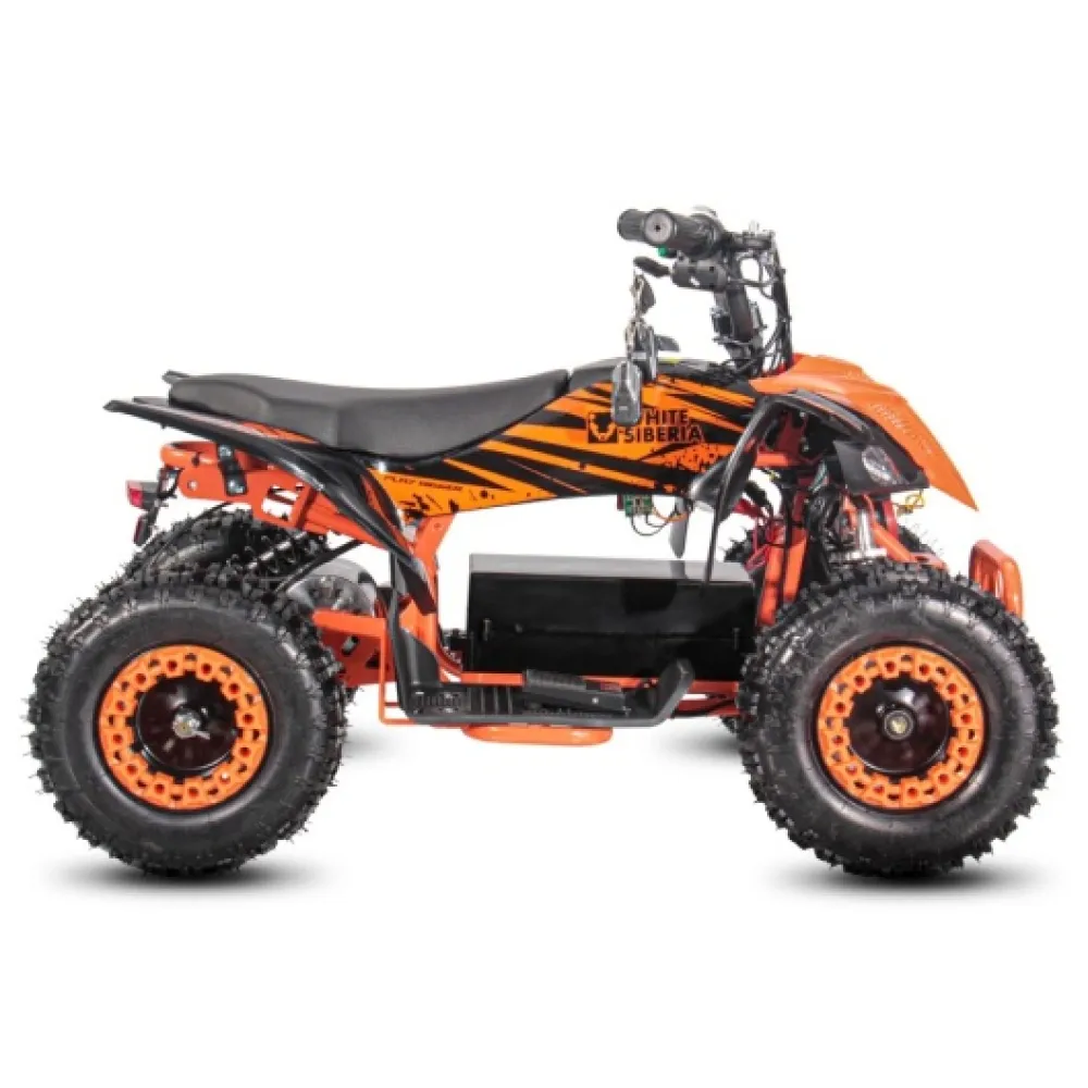 Модель заметная на фоне других участников движения. Скоростная. При мощности электромотора 1000 Вт максимальная скорость разгона достигает 25 км/час. Электроквадроцикл оснащен большой светодиодной фарой, разрешающей езду и развлечение подрастающего водителя в вечернее время и проблематичную погоду. Большие отлично сцепляемые с поверхностью колеса гарантируют безопасность скоростной езды.