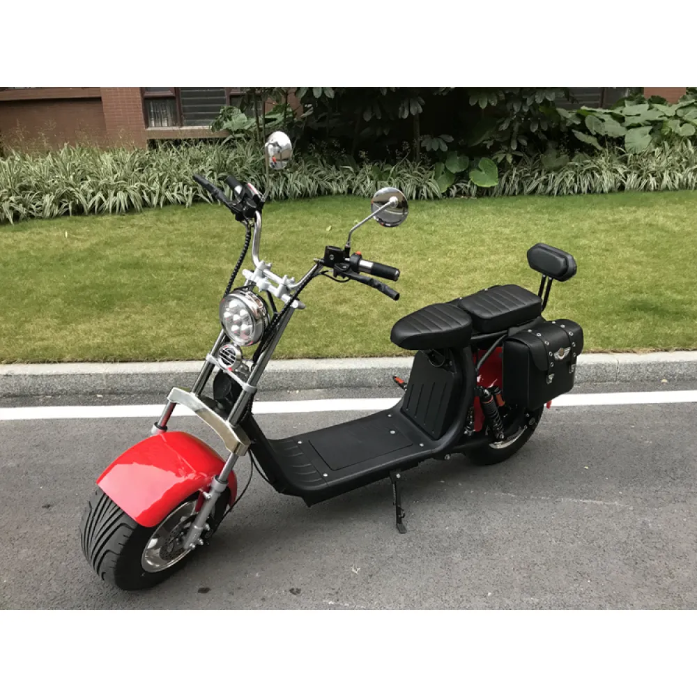 Прочная и простая конструкция Citycoco X11BR, мощное мотор-колесо в 2000Вт, передние и задние дисковые тормоза. Запатентованные широкие колеса с литыми дисками диаметром 18 дюймов, шириной 9.5. Позволяет чувствовать уверенность в управлении транспортным средством на прямой дороге и в повороте. Так же ширина колеса делает его очень устойчивым.