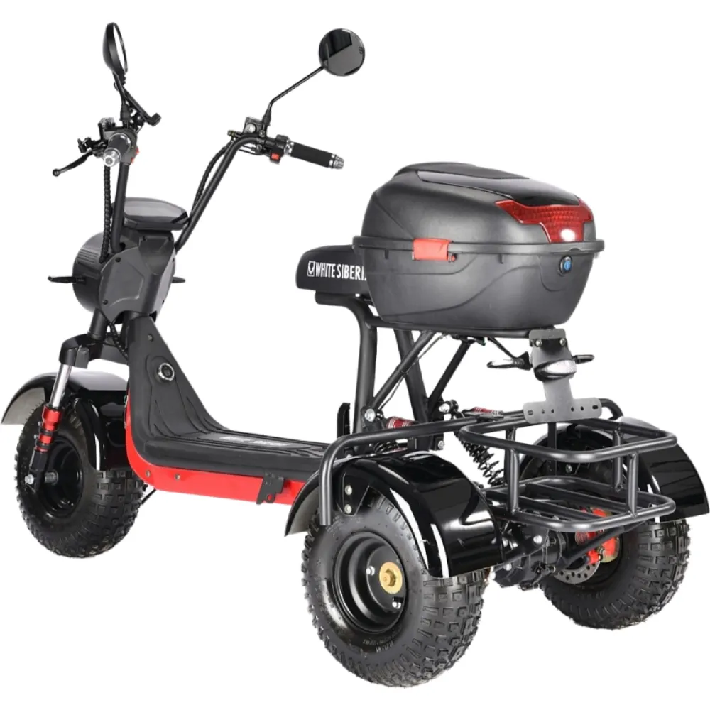 Электроскутер CityCoco WHITE SIBERIA TRIKE MINI 1500W 48V 18Ahмощный трицикл от российского бренда White Siberia. Визуально модель доказывает, подчеркивает силу и назначение. Электроскутер создан для целеустремленных смелых мужчин и женщин, ведущих активный образ жизни, для которых скоростная езда и прогулки на свежем воздухе занимают лидирующие позиции.