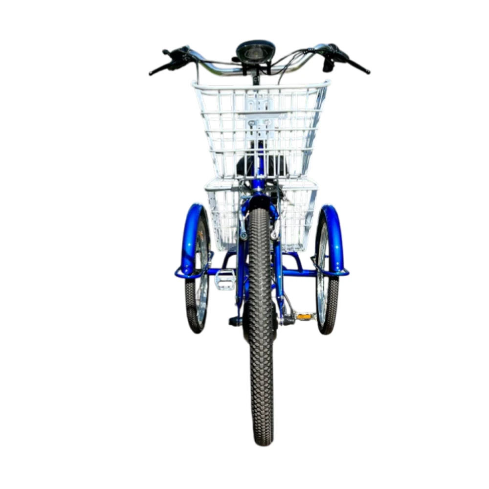 Для 16+, рост 150–185 см, новичков, пожилых, курьеров, людей с ограниченными возможностями (стабильность без баланса). Цели: работа/прогулки/доставка с грузом 50 кг в корзинах. Корзины удобны для дачи/рынка.