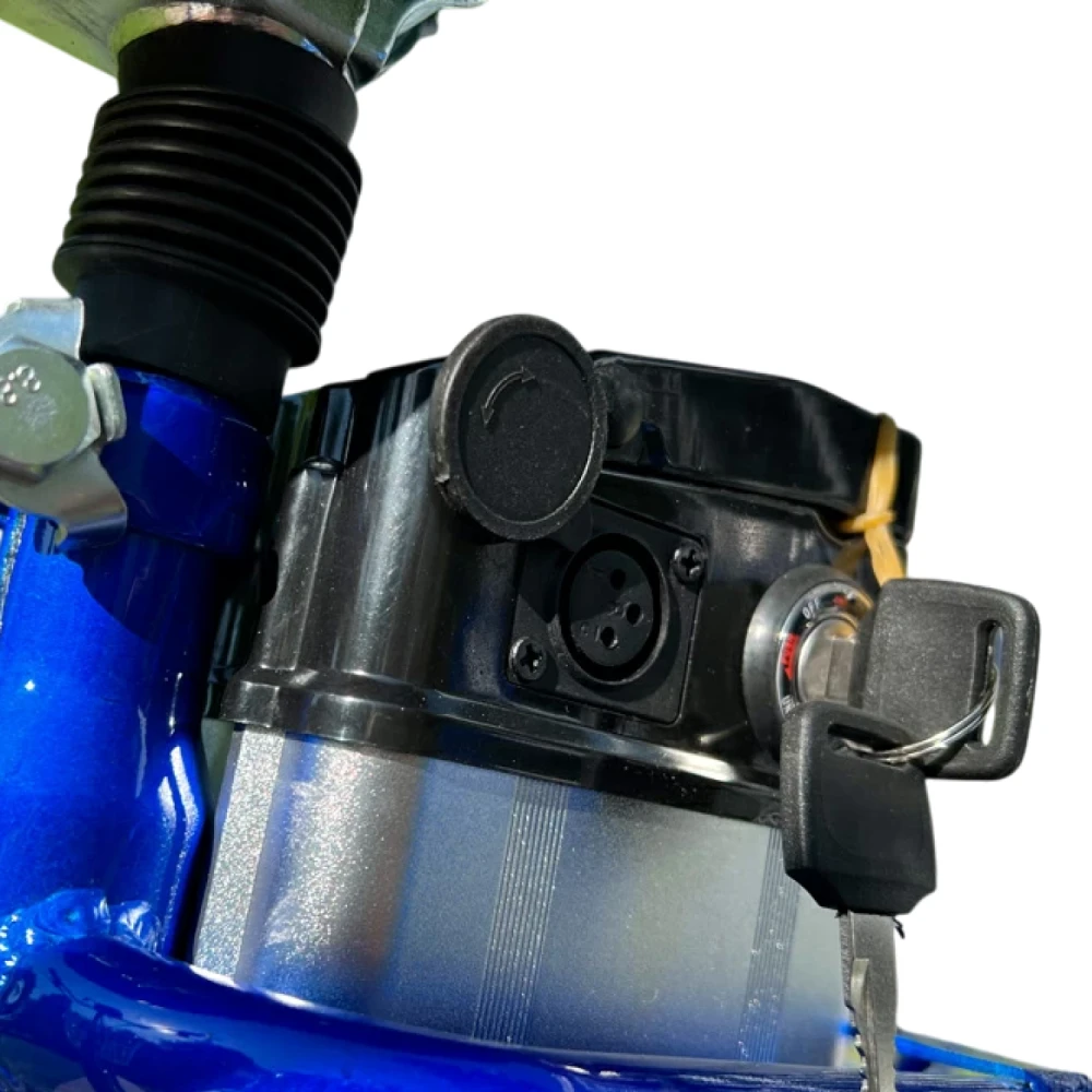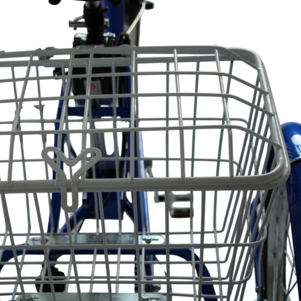 Велосипед, АКБ, ЗУ (110–240В 2A), корзины, звонок. Опции: зеркала, замок. Совместим с универсальными (крылья, багажники).